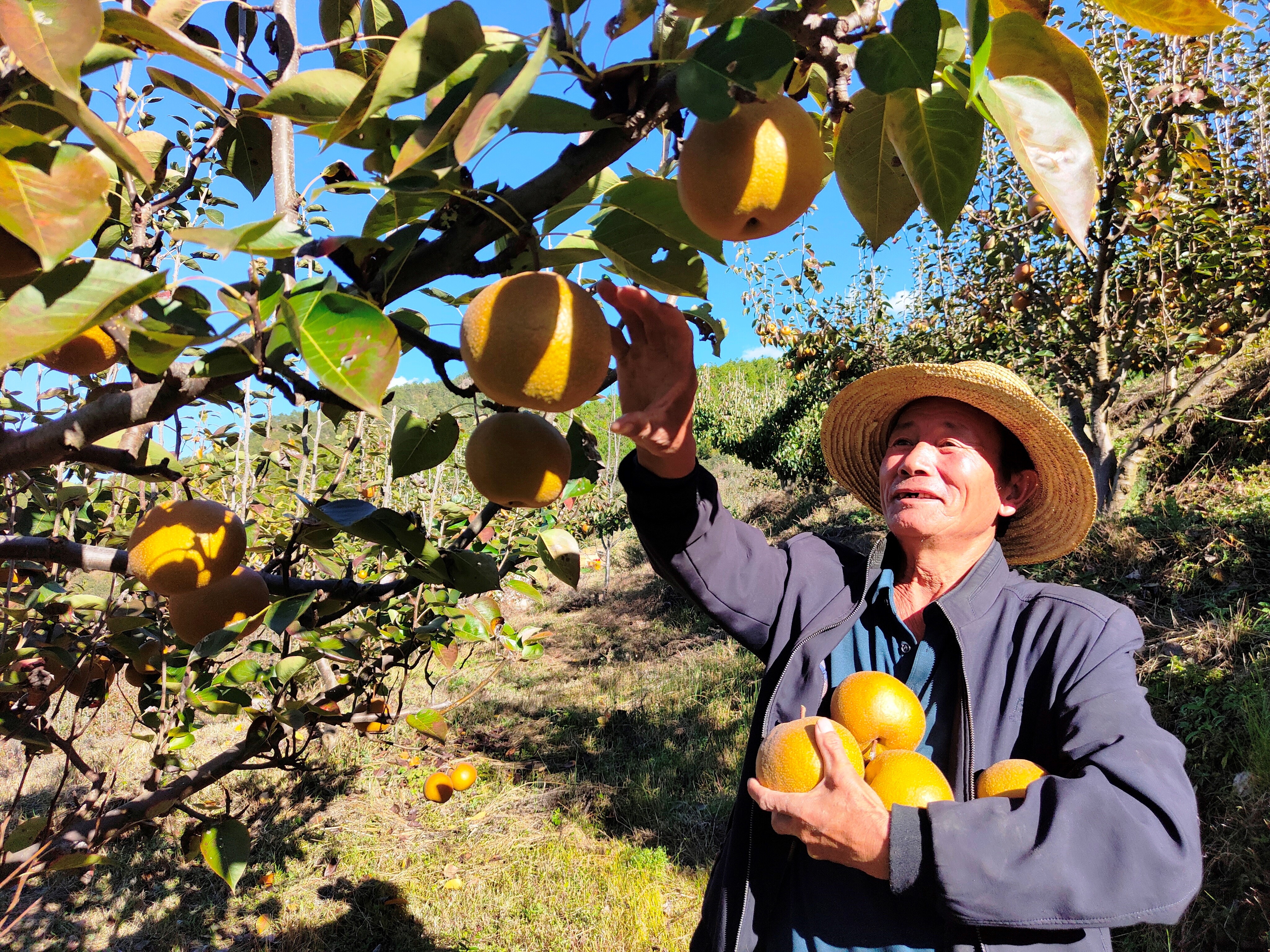 云龙县白石镇农户在采摘国家农产品地理标志保护产品——云龙麦地湾梨。赵云平摄