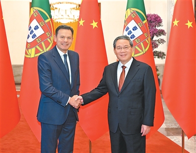 李强指出,中方愿同葡方加强发展战略对接,继续高质量共建“一带一路”,用好战略对话、经贸混委会、中国—葡语国家经贸合作论坛等机制,推动双边贸易优化平衡发展,在数字经济、绿色经济等新兴领域深挖潜力,打造更多合作增长点,支持两国企业联手开拓第三方市场。中方愿进口葡更多优质农食产品,鼓励更多中国企业赴葡投资,希望葡方营造良好营商环境。双方还要进一步便利人员往来,释放旅游经济活力,加强高校、语言教学、数字教育、青少年等人文领域交流合作。当前,单边主义、保护主义行径严重冲击国际秩序,中欧作为全球两大力量,应当加强协调,共同应对。希望葡方推动引导欧盟坚持中欧伙伴定位,采取积极、务实对华政策,同中方一道维护自由贸易,维护中欧共同利益。