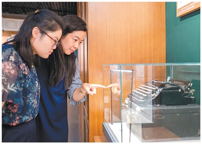 2025年9月19日,上海淞沪抗战纪念馆,观众正在参观中国检察官向哲濬参加东京审判时所使用过的老式打字机。王初摄(人民视觉) |