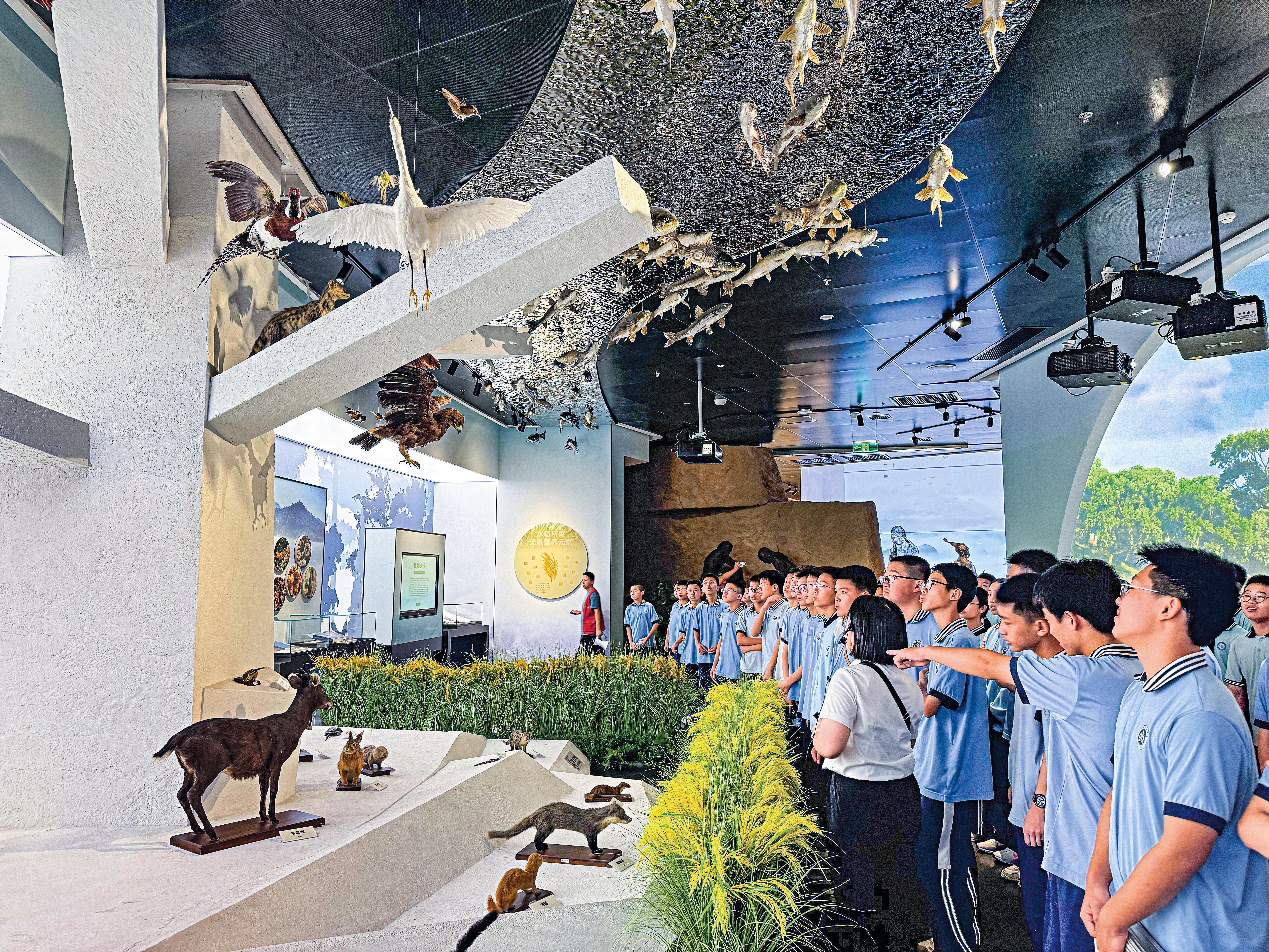 怀化市宏宇中学学生在讲解员的带领下,参观杂交水稻发源地博物馆,了解杂交水稻的培育过程。刘蓉摄