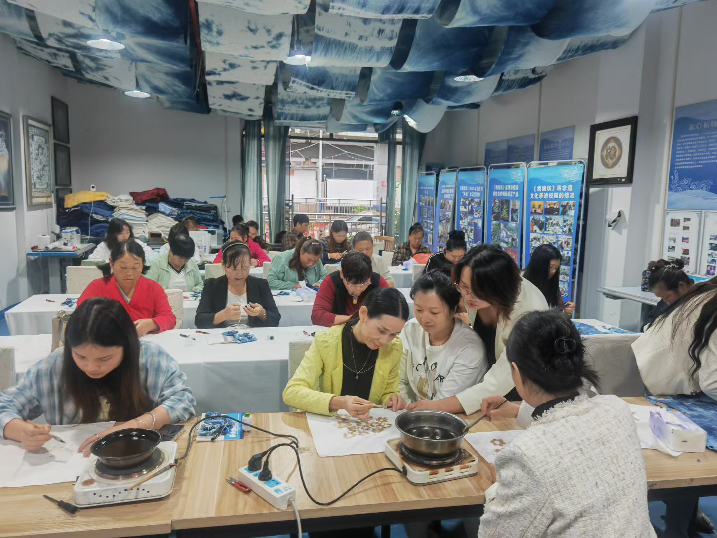 近年来,随着非遗保护意识的增强,安顺蜡染得到更多关注和保护。当地通过申报非遗代表性传承人、建立蜡染博物馆、开展蜡染文化活动等方式,积极推动蜡染技艺的传承和发展。图为当地正在开展蜡染技艺培训。安顺市文体广电旅游局供图