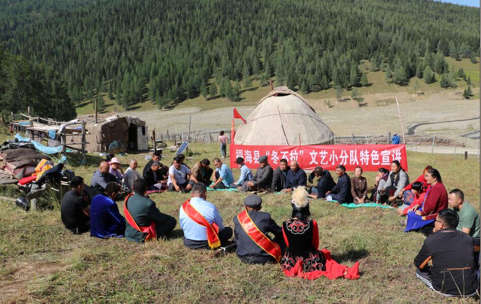 福海县冬不拉文艺小分队成员深入偏远牧区向牧民宣讲党的二十大精神 批丽扎提 摄