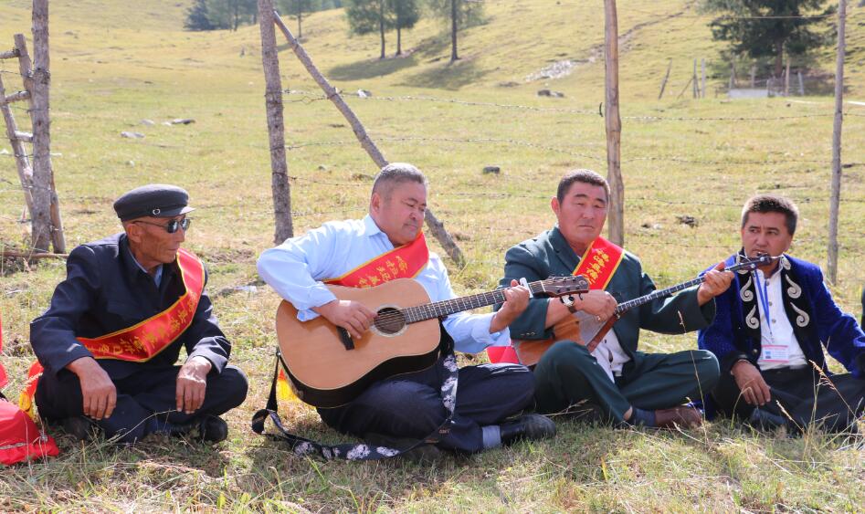当地牧民认真倾听福海县冬不拉文艺小分队的弹唱 批丽扎提 摄