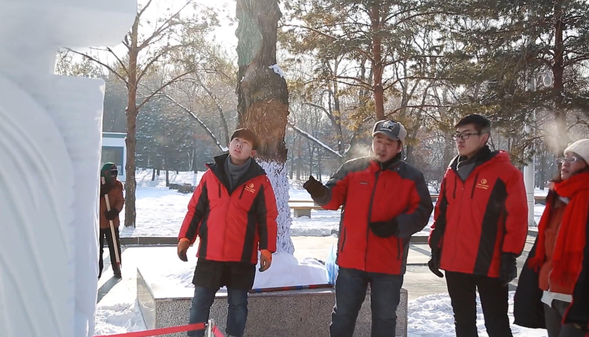 祝劲松(左二)在给学生讲解冰雪雕技法(图片由受访者提供)