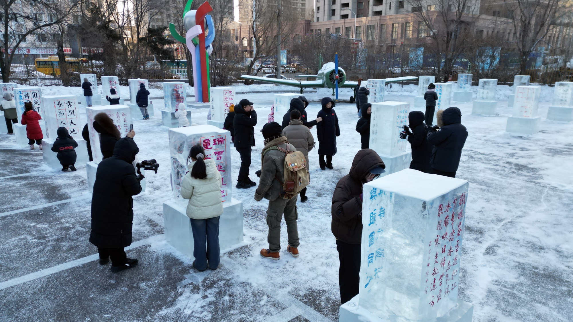 更令人惊叹的是空间表现形式的突破。东方学院教授朱晓东首创的“冰版画”,以冰板为纸、刻刀为笔,将雕刻与墨拓结合,让冰雪艺术得以在纸上永恒留存;第二职业学校教师郑金男首创的“冰冻花卉”技艺,开发了冰内雕刻赋色,让傲放的鲜花定格于冰晶之中;哈尔滨学院与国家一级美术师王昌利携手研发的“冰花瓷”,以匠心妙艺将北国冰霜凝于瓷瓶,让转瞬即逝的冰雪之美,在瓷韵中成为永恒。而2月6日举办的哈尔滨市首届少年儿童冰艺书法展,则实现了“冰雕+书法”的跨界融合……这些创新,让冰雪雕艺非遗项目焕发新的活力。