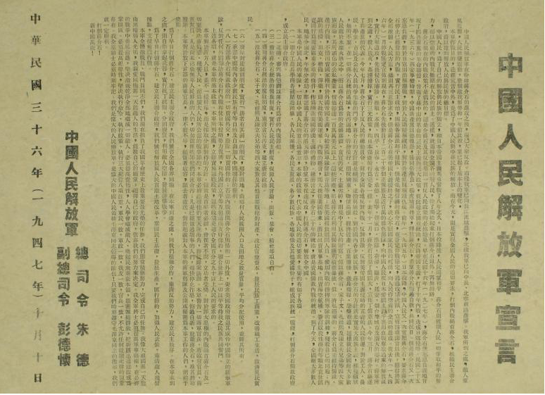 1947年《中国人民解放军宣言》(浙江省博物馆馆藏)