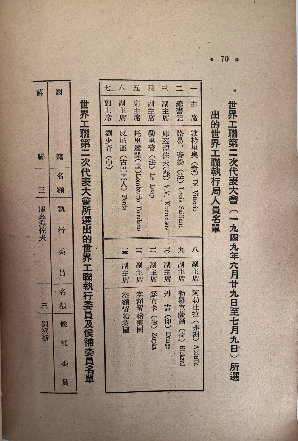 1949年6月29日至7月9日,世界工联第二次代表大会在意大利米兰举行,刘少奇在会上当选为世界工联副主席。中国工会代表团向大会建议亚洲澳洲工会会议在北平召开,得到世界工联同意。