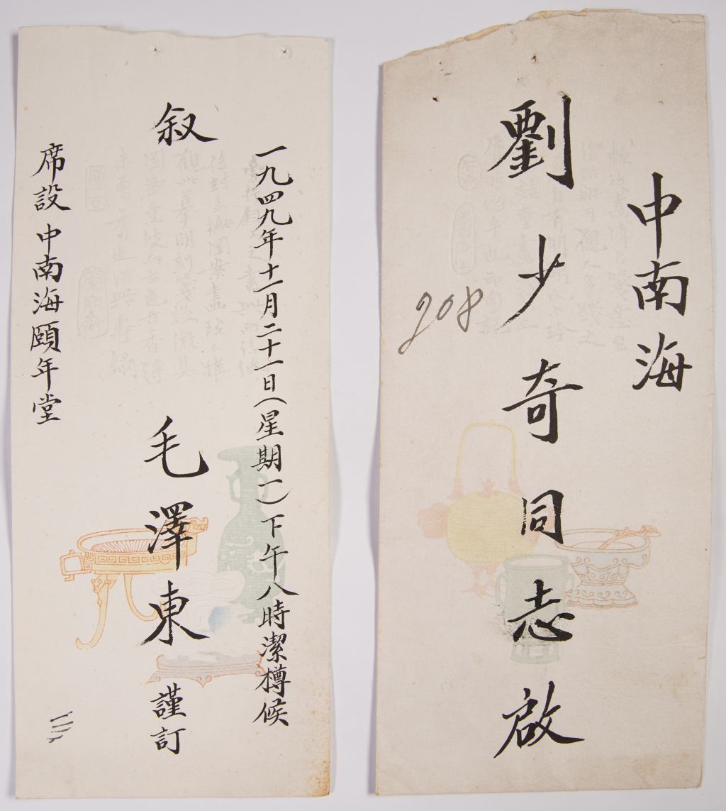 毛泽东邀请刘少奇出席1949年11月21日晚宴的请柬(一级文物)