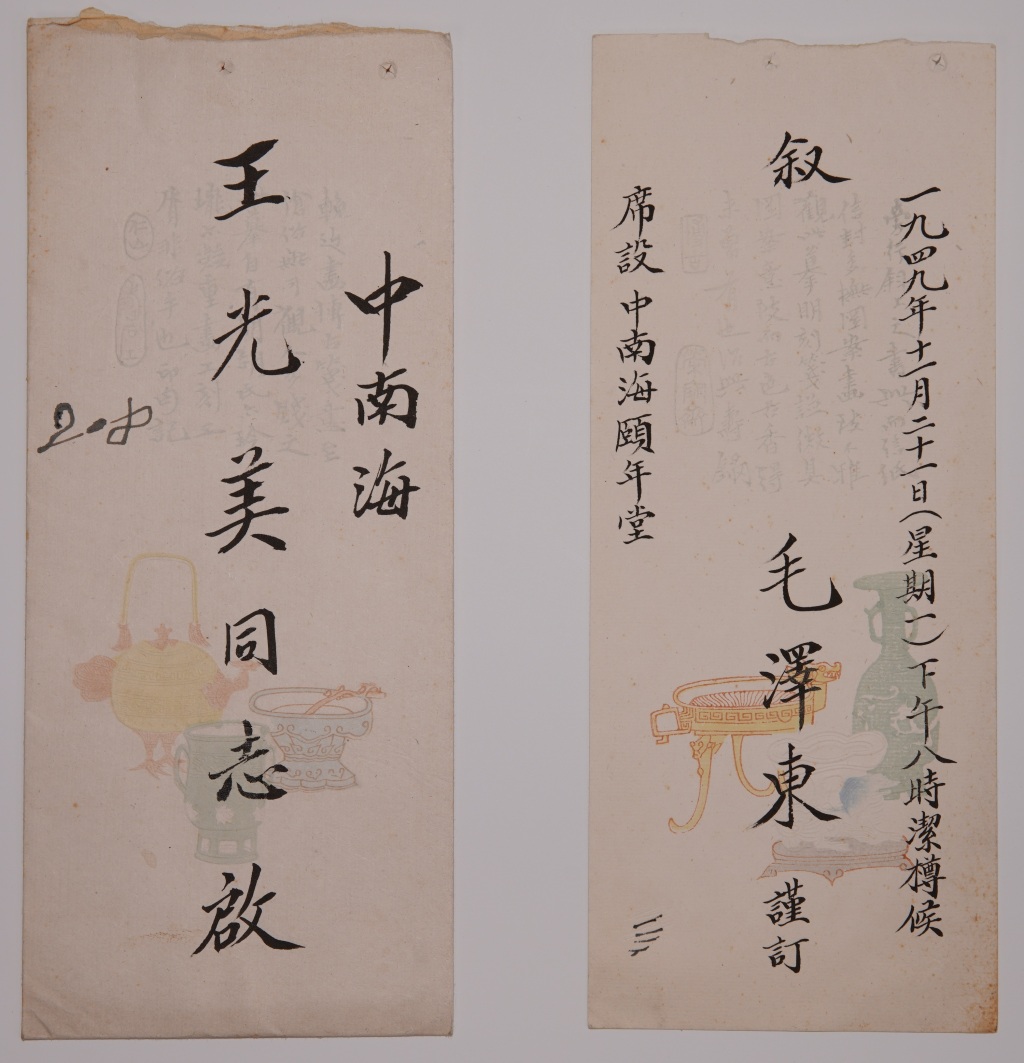 毛泽东邀请王光美出席1949年11月21日晚宴的请柬(二级文物)