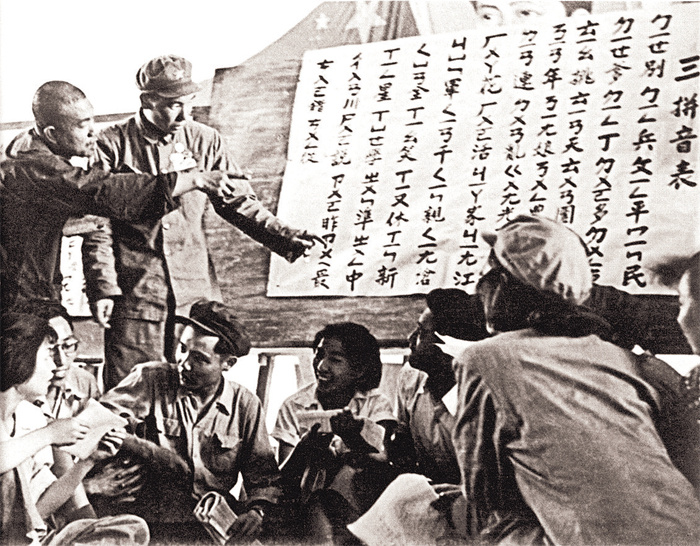 1958年2月,第一届全国人民代表大会第五次会议批准颁布《汉语拼音方案》,这套简便易学的工具,成为新一轮扫盲运动的利器。山西省万荣县大力推行“注音识字”法,在加快扫盲速度、巩固扩大扫盲成果方面成效显著。毛泽东高度肯定万荣经验,作出批示要求全国推广。1960年5月11日,中共中央发布《关于推广注音识字的指示》。“学万荣、赶万荣”的注音识字运动很快在全国范围内如火如荼开展起来,极大提升了识字效率和知识巩固率。