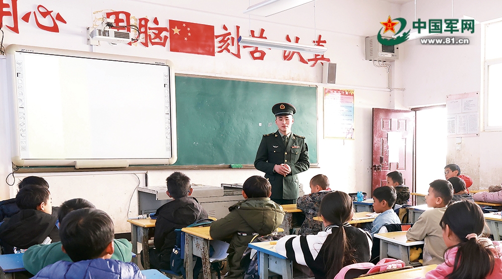 “雷锋班”所在连队官兵开展爱心助学活动。图为战士为学生讲雷锋的故事。
