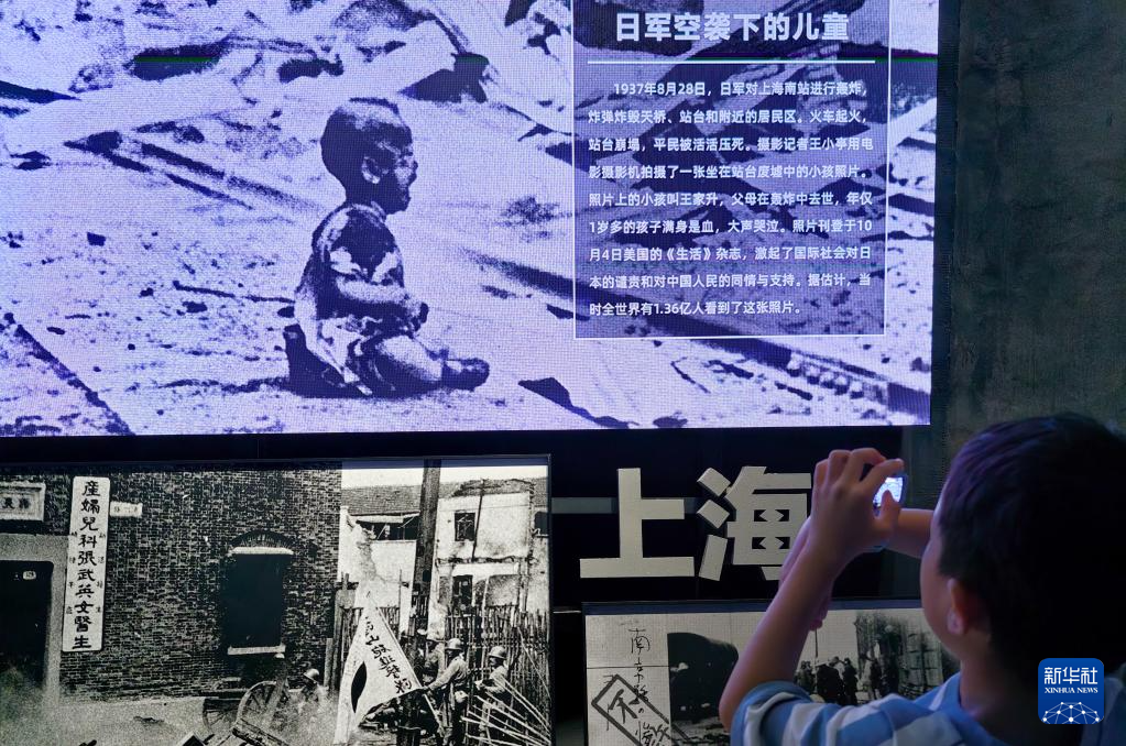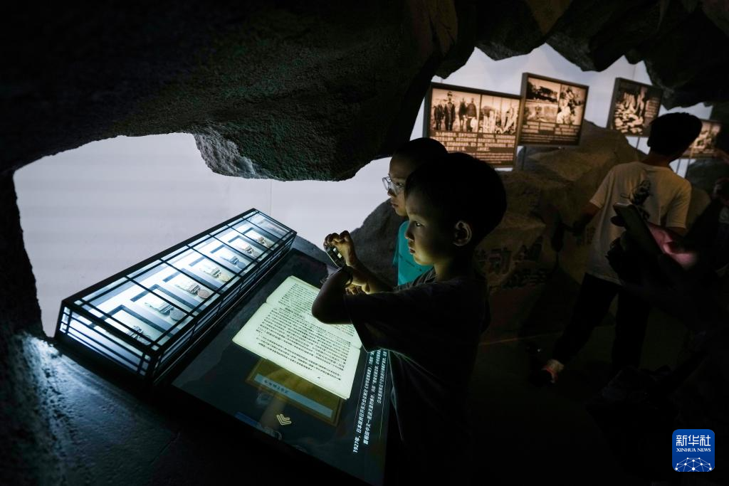 一名小朋友在中国人民抗日战争纪念馆《为了民族解放与世界和平》主题展览参观(7月22日摄)。新华社记者鞠焕宗摄