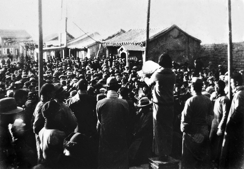1935年12月9日,一二九运动在北平爆发。这是中国共产党领导的一次大规模爱国救亡运动,公开揭露了日本吞并华北进而独占中国的阴谋。运动迅速发展,很快席卷全国,成为中华民族觉醒历程中的一座丰碑。图为学生们向北平市民演讲。新华社发