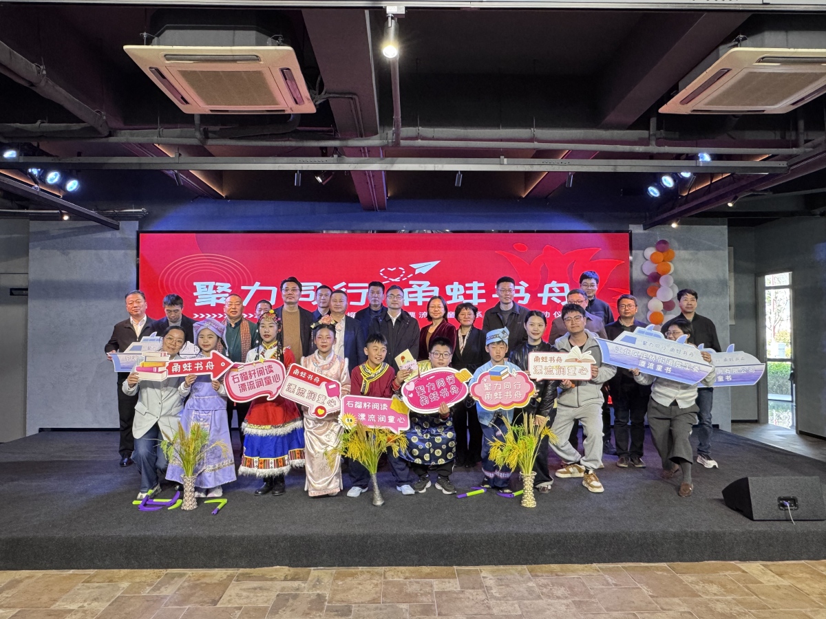 启动仪式上,江北区、怀远县相关领导分别致辞,表达对两地文化协作的期许。随后,两地领导与爱心企业代表共同点亮主屏幕,正式开启“聚力同行 甬蚌书舟”系列活动。少数民族儿童代表朗诵诗歌《跨越山海 心手相牵》。在图书漂流环节,庄桥街道党工委、宁波大学附属学校、宁波三江检测有限公司、宁波大港印务有限公司等单位现场捐赠童书500余册,这些书籍将陆续送往怀远。活动还向韩光智等三位老师颁发“阅读推广人”聘书,韩光智现场带来《节气少年说:读书就是引体向上》童书分享课。