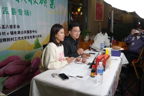 到村工作大学生参与盂县农产品直播,受访者供图