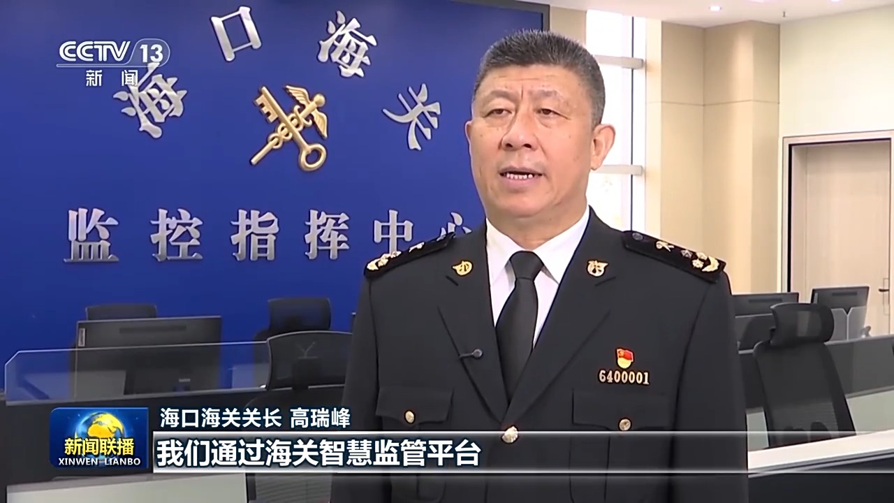 海口海关关长 高瑞峰:我们通过海关智慧监管平台对货物实行风险分析、精准布控,优先采用智能检查设备查验,机检正常的1分钟左右即可通关,机检异常才会引导人工查验,既保证了监管精准,又确保高效通关。