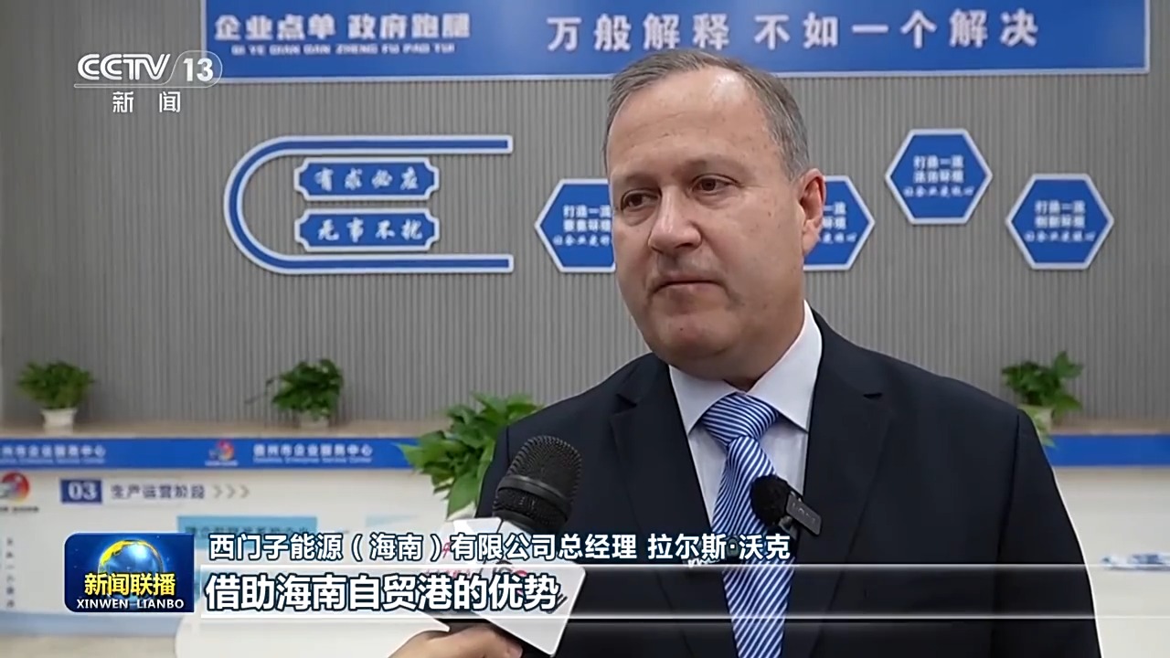 西门子能源(海南)有限公司总经理 拉尔斯·沃克:借助海南自贸港的优势,我们可以优化物流流程,使一切更加快捷,加快交货速度,海南自贸港极具竞争力的开放举措,让我们对在这里的发展充满信心。