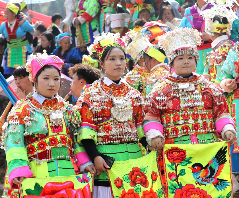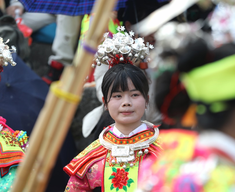 据了解,苗族“跳月”是当地最隆重的传统民俗活动之一,包含祭祀祈福、欢庆新春等内容,既是苗族儿女歌颂美好生活、祈愿风调雨顺的重要仪式,也是青年男女相亲交友的平台,更是展示苗族服饰、银饰、刺绣等技艺的重要载体。