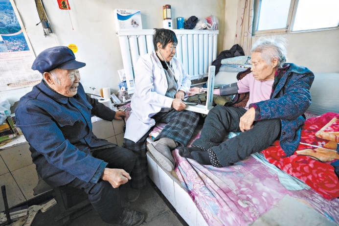晋怀花(左)上门为老人检查。北京晚报记者安旭东摄