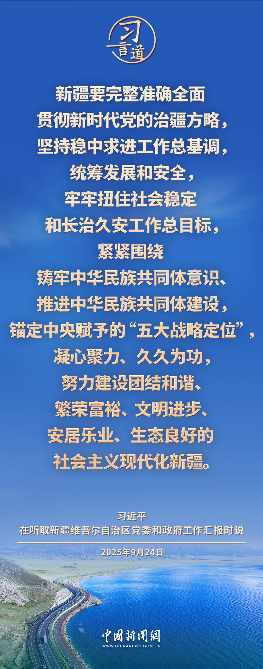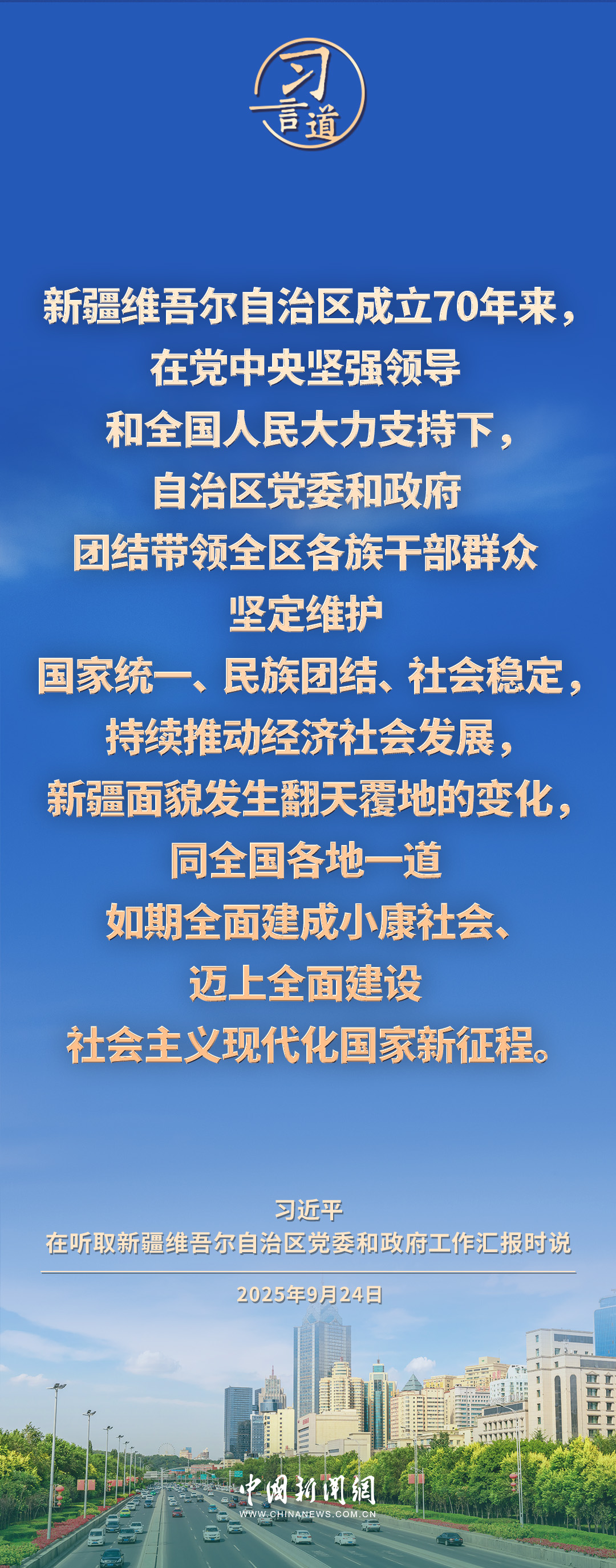 率中央代表团出席新疆维吾尔自治区成立70周年庆祝活动的中共中央总书记、国家主席、中央军委主席习近平,24日听取新疆维吾尔自治区党委和政府工作汇报。他强调——