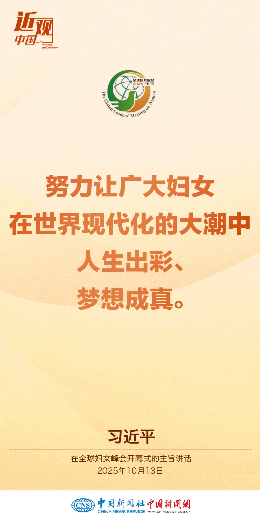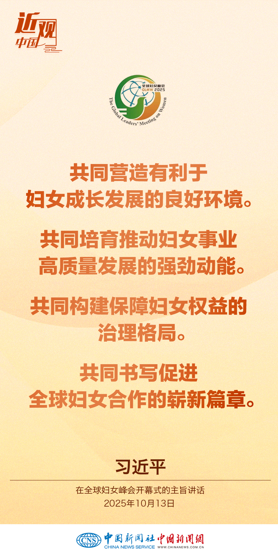 全球妇女峰会开幕式10月13日上午在北京举行。国家主席习近平出席峰会开幕式并发表主旨讲话。他指出——