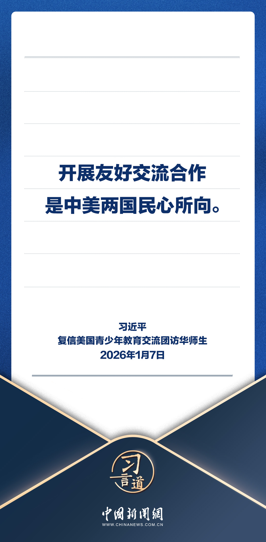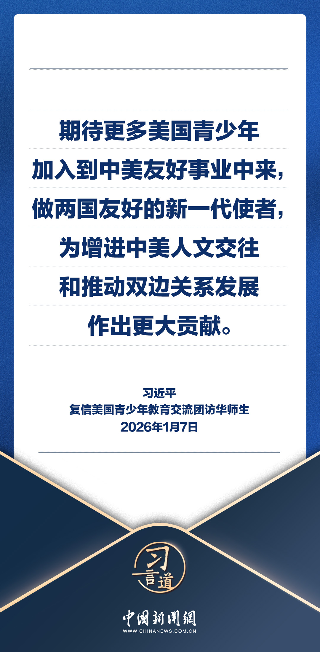 1月7日,国家主席习近平复信由美国佛罗里达州迈阿密钻石领航学院、佛罗里达大学、迈阿密戴德学院组成的青少年教育交流团访华师生。习近平指出——