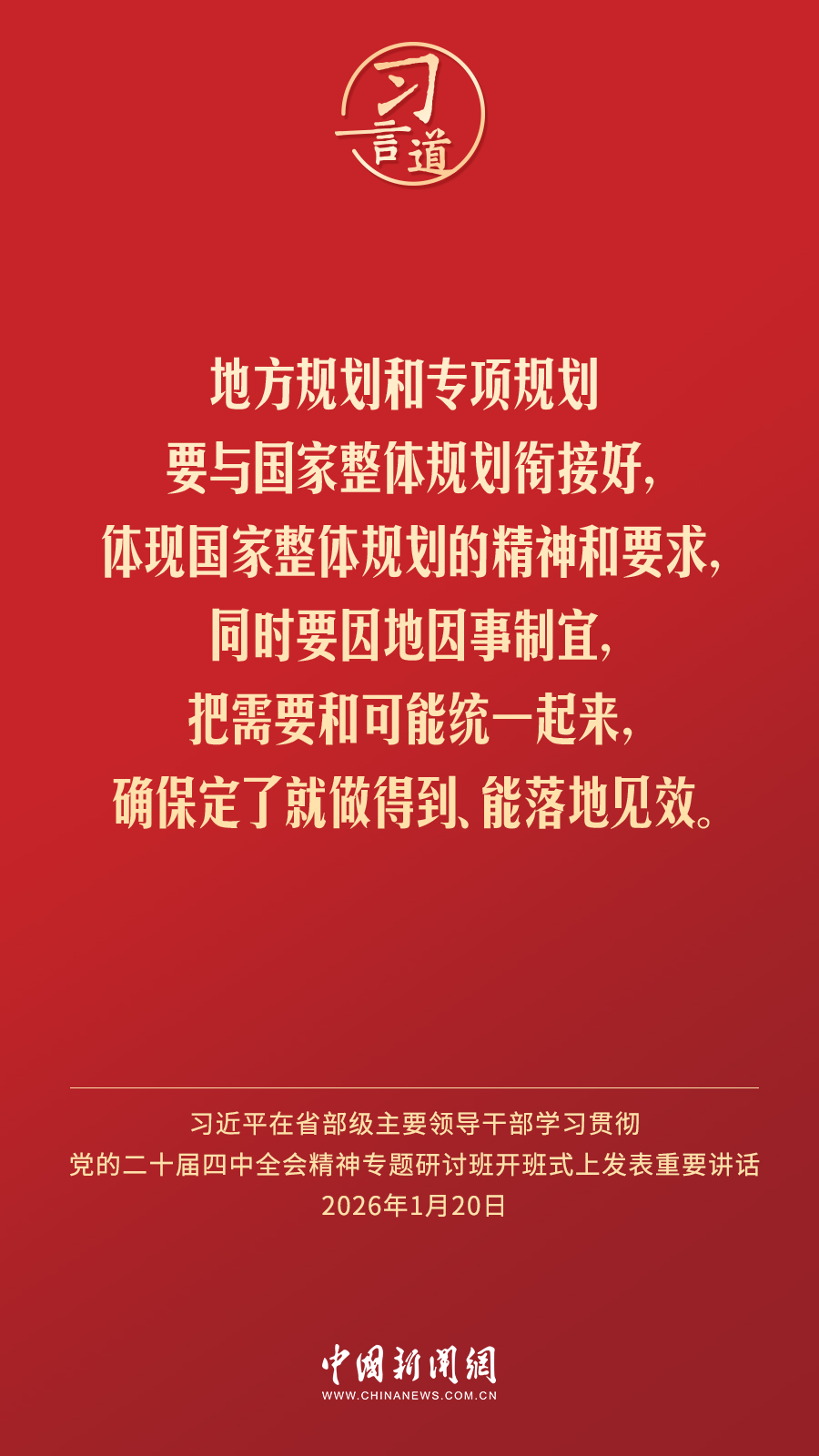 1月20日,省部级主要领导干部学习贯彻党的二十届四中全会精神专题研讨班在中央党校(国家行政学院)开班,中共中央总书记、国家主席、中央军委主席习近平在开班式上发表重要讲话强调—— 。