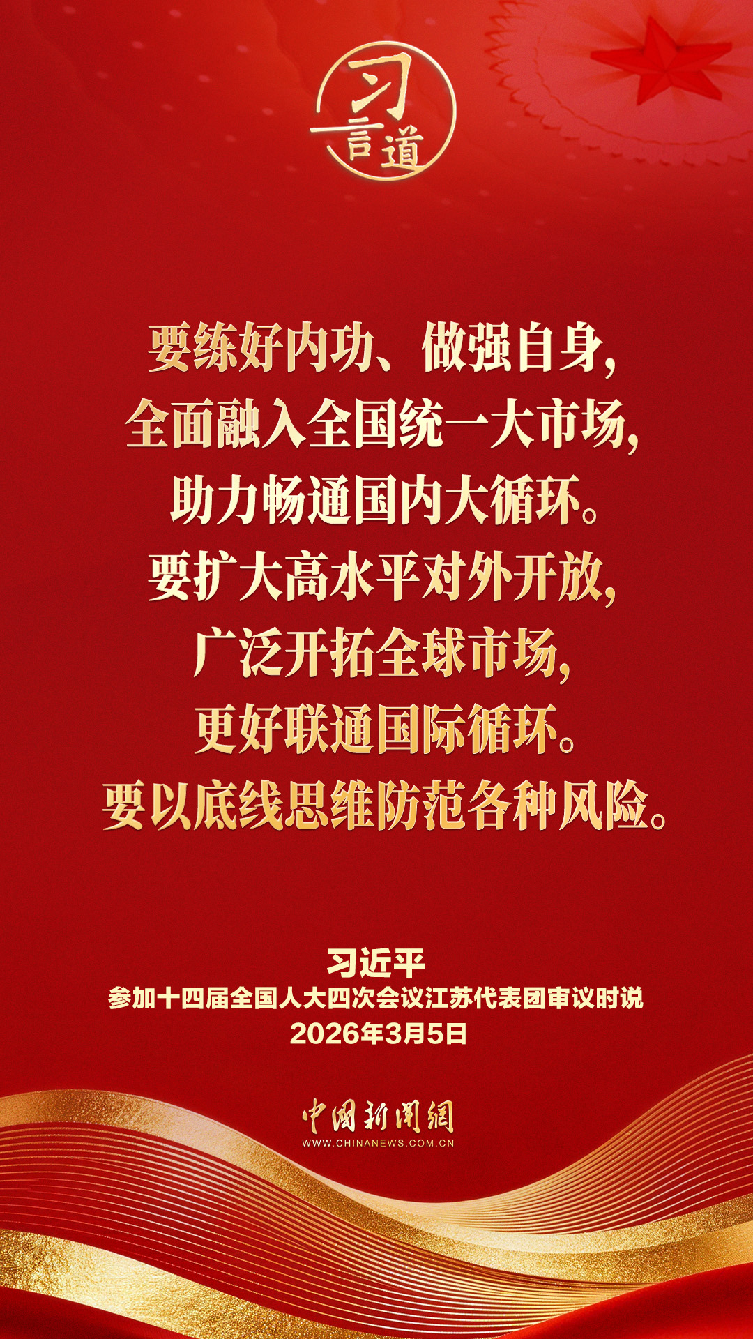3月5日下午,中共中央总书记、国家主席、中央军委主席习近平参加他所在的十四届全国人大四次会议江苏代表团审议。他指出——