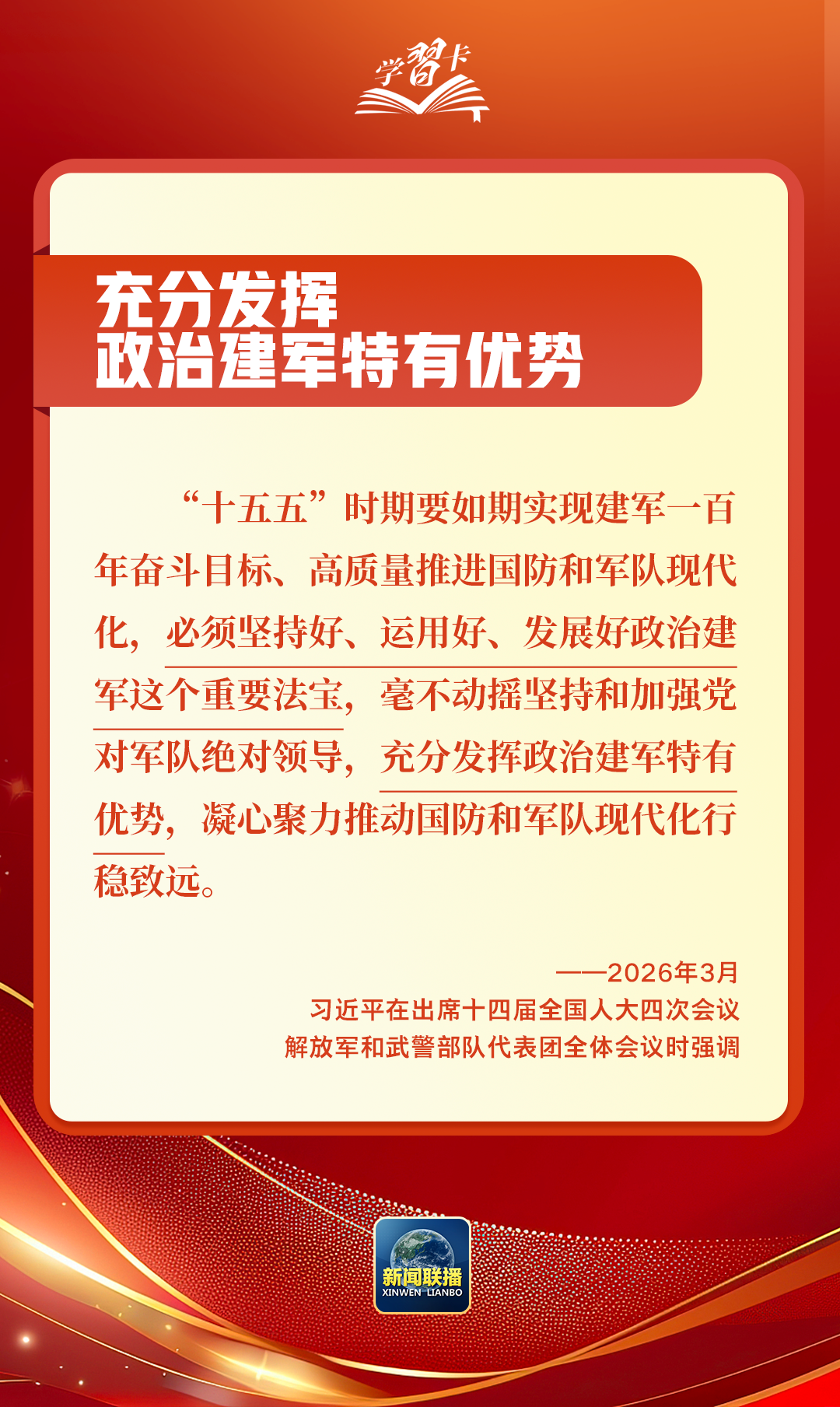 2026年全国两会正在召开,代表委员们共商“十五五”发展大计,共谋中国式现代化建设新篇,3月5日至7日,习近平总书记先后参加江苏代表团审议、看望全国政协委员、出席解放军和武警部队代表团全体会议,围绕经济大省发展、健康中国建设、政治建军等重大议题作出深刻阐释、提出明确要求,为“十五五”开好局、起好步提供科学指引。