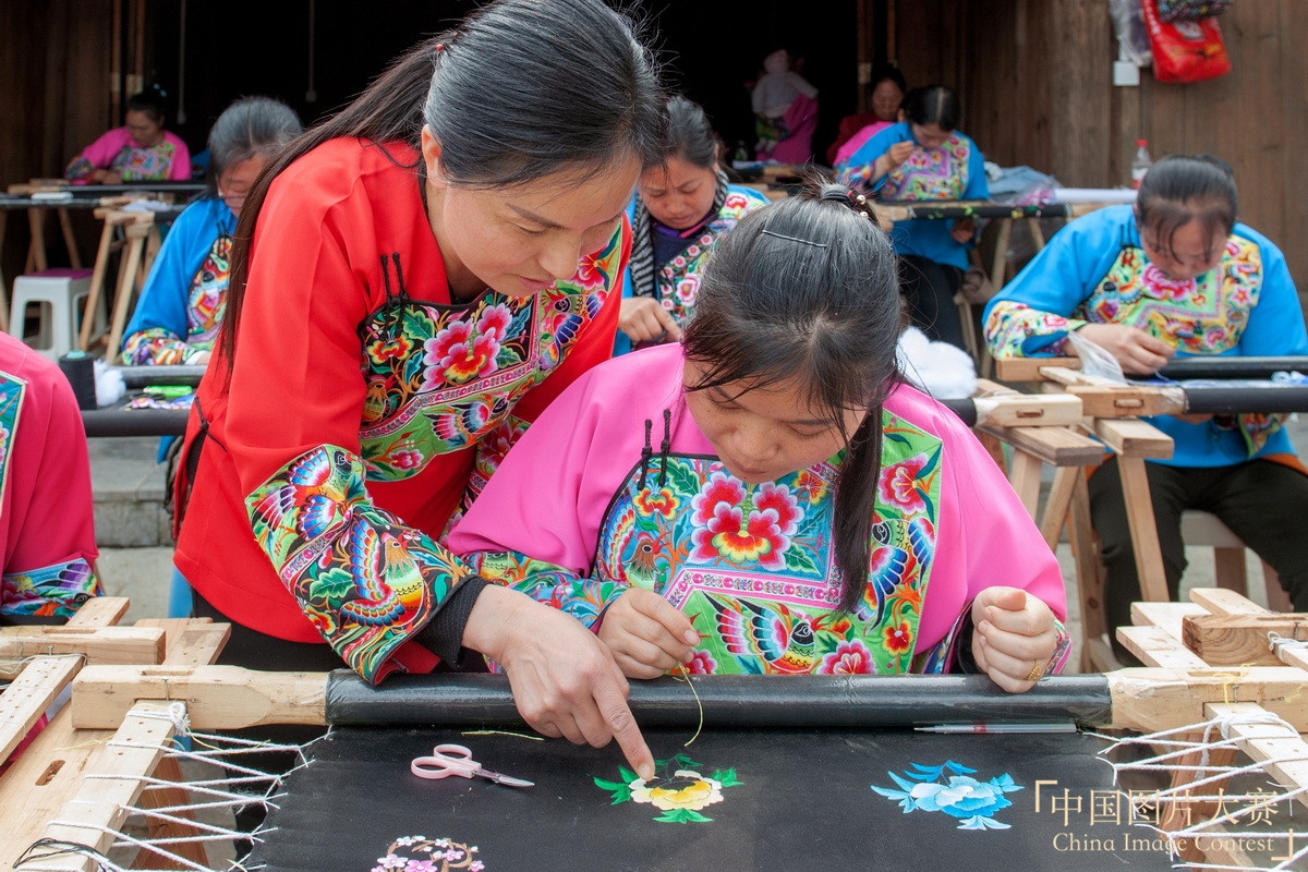 苗绣老师指导学员苗绣技巧。 张朝阳 摄