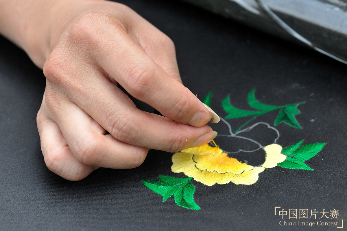 学员用灵巧的手,绣出精美的花朵。 张朝阳 摄