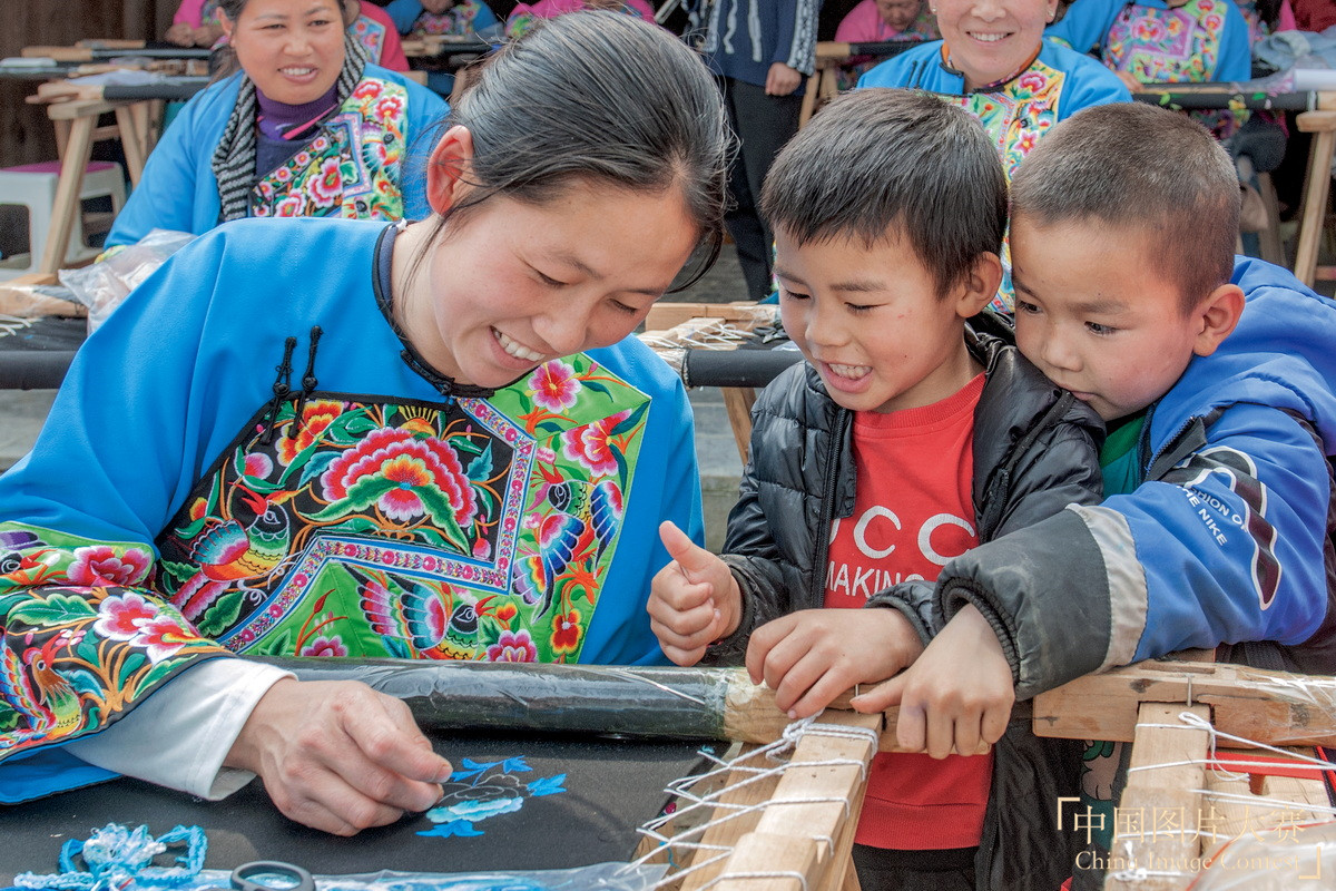 “妈妈绣出漂亮的图案,为妈妈点赞。”张朝阳 摄